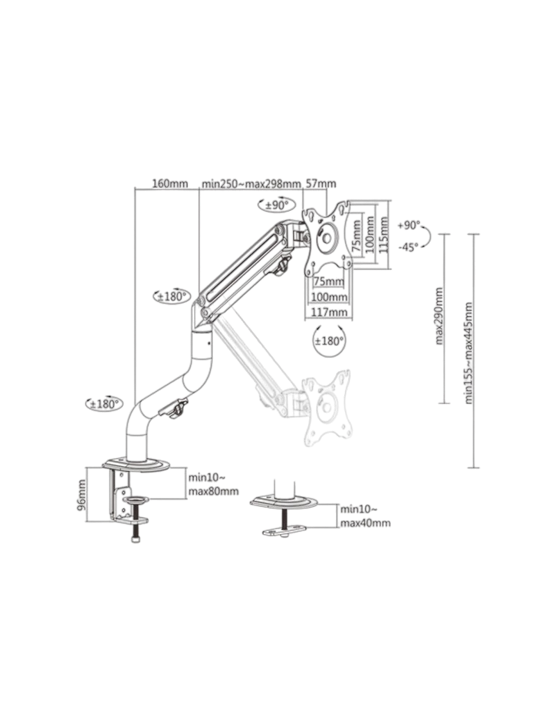Suport birou pentru monitoare Gembird MA-DA1-02, Negru