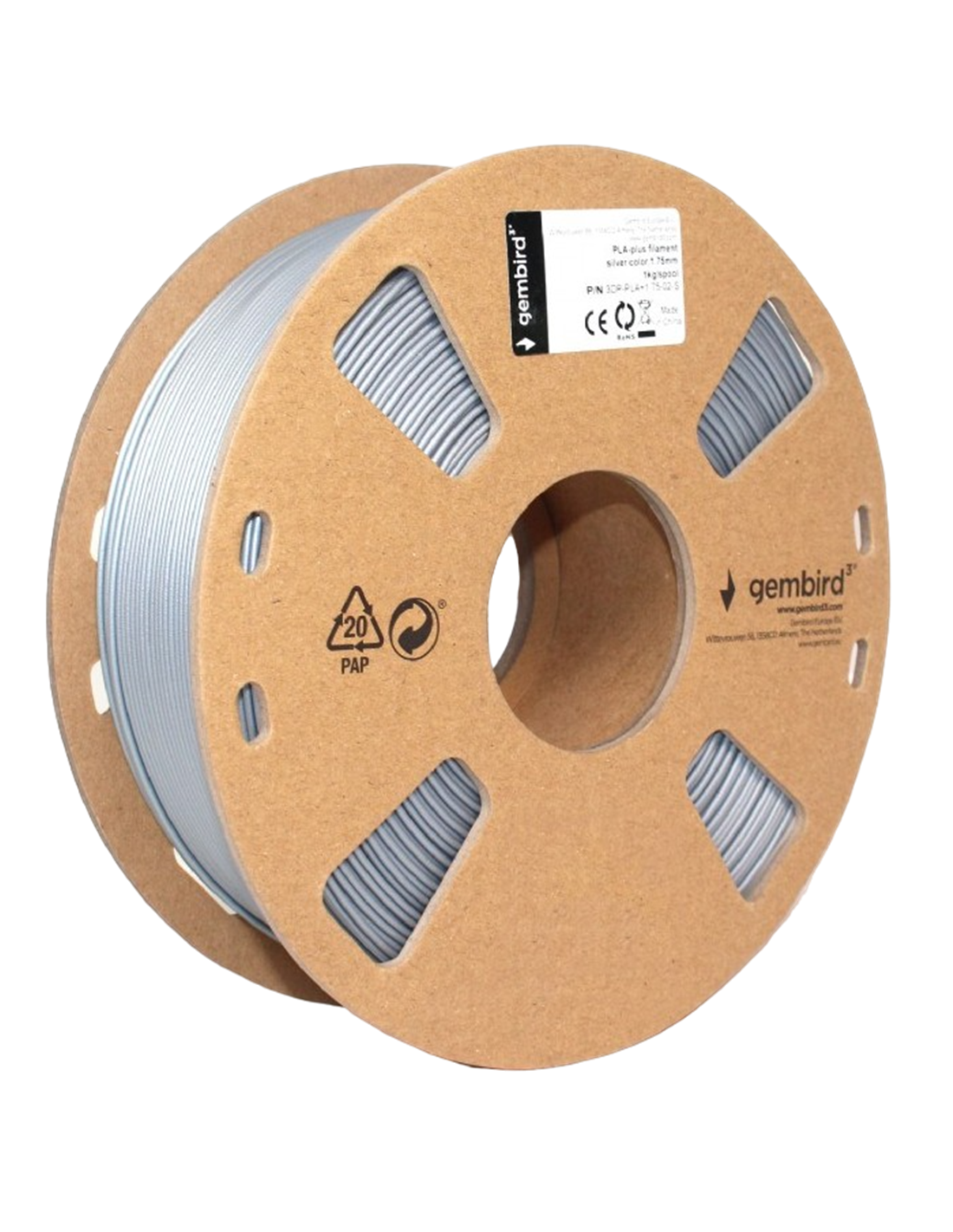 Filament pentru imprimantă 3D Gembird 3DP-PLA1.75-01-S, PLA, Argint, 1.75 mm, 1 kg