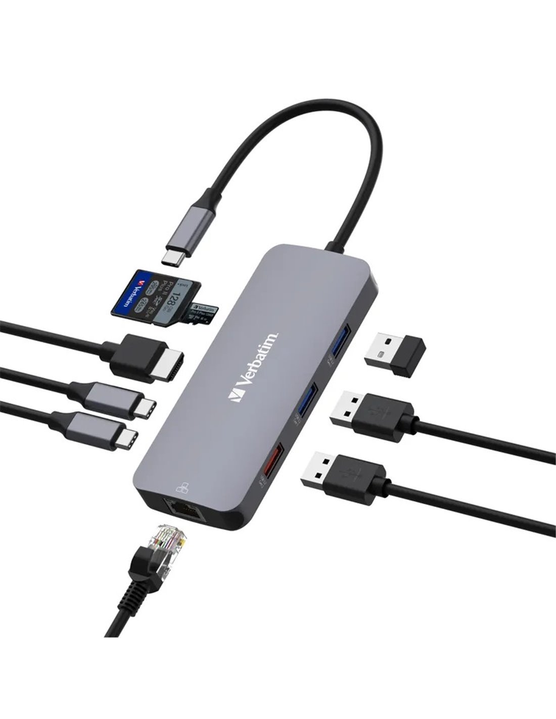 Adaptor Multiport Verbatim CMH-09/ USB-С/ 2xUSB-A 3.2/ 1xUSB-A 3.2(Gen 2)/ 2xUSB-C 3.2(Gen 2)/ HDMI/ RJ45/ SD/ microSD
