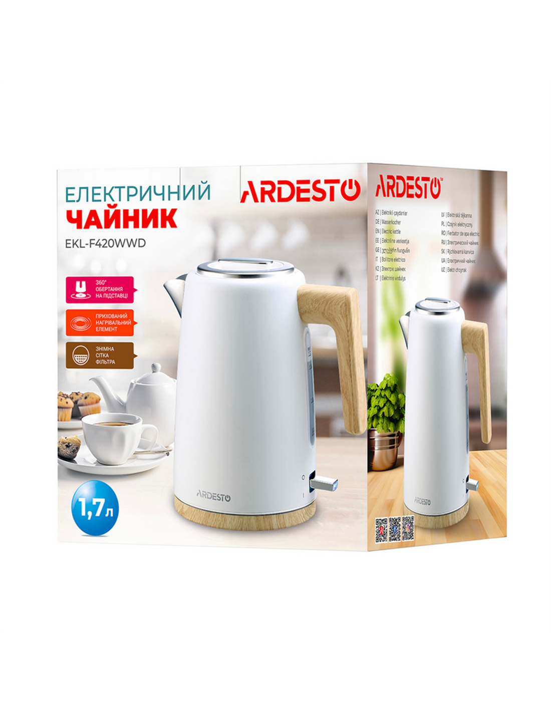 Fierbător electric Ardesto EKL-F420WWD, Alb