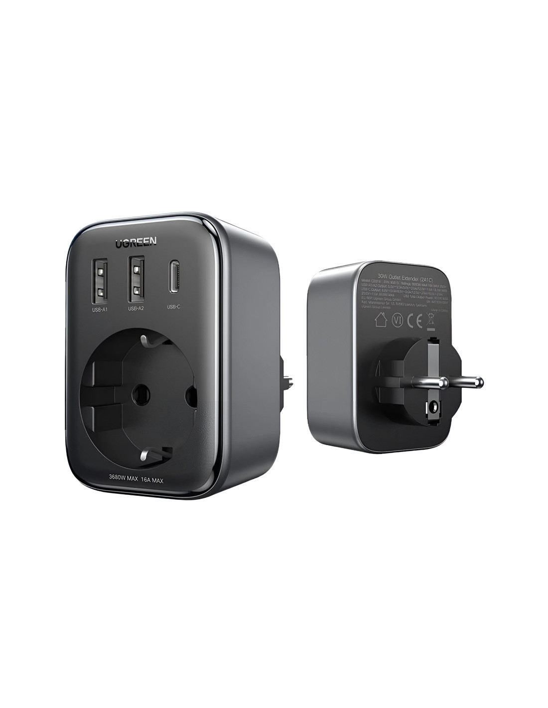 UGREEN Outlet Extender 30W 2*USB + Type-C + AC CD314, Black