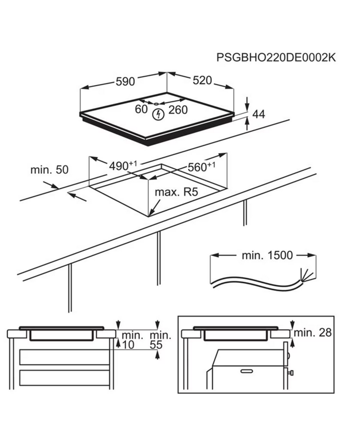 Plită cu inducție Electrolux EIT60433CT, Negru