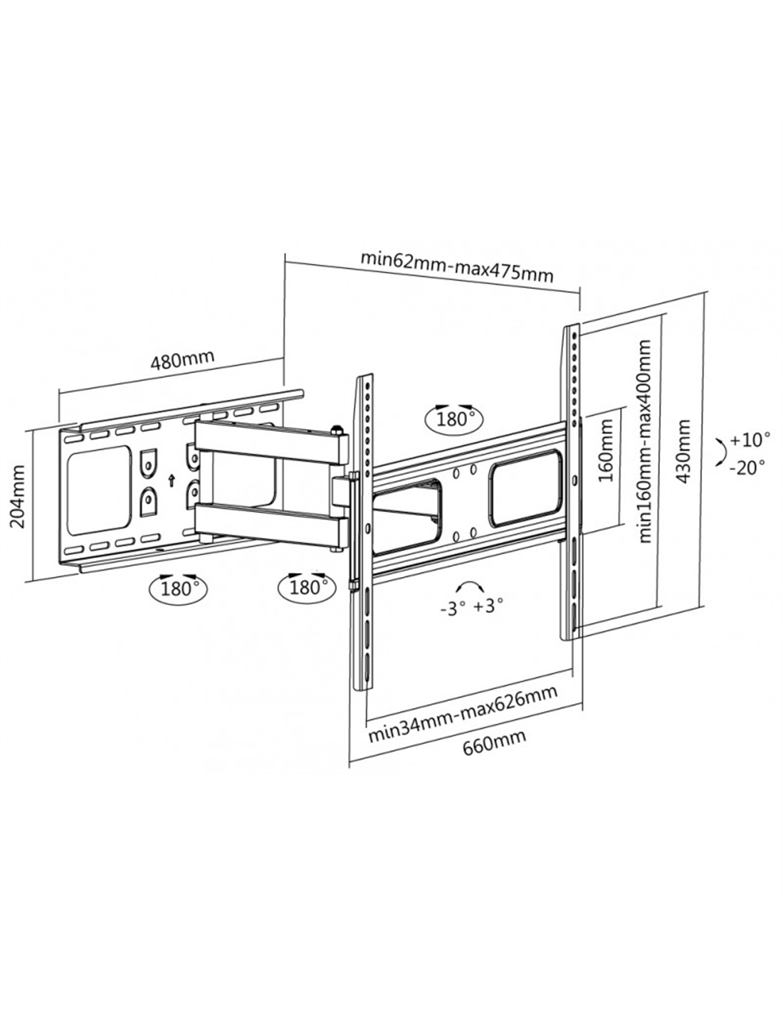 Suport de perete înclinat și pivotant