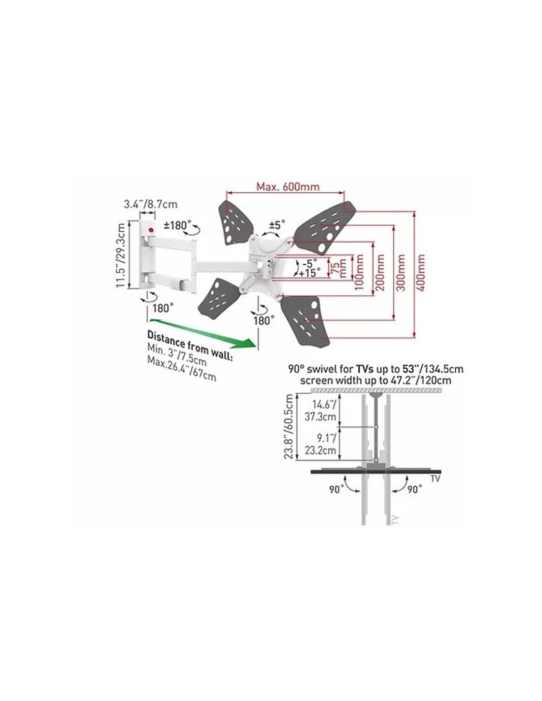 Настенное крепление для телевизора BARKAN 3400LW, Белый