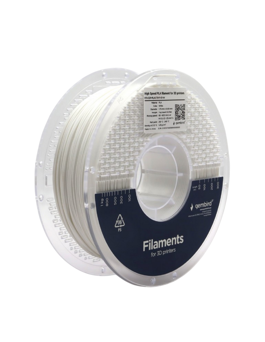 Нить для 3D-принтера Gembird 3DP-PLA1.75HY-01-W, PLA, Белый , 1.75 мм, 1кг
